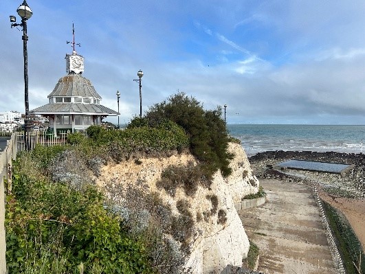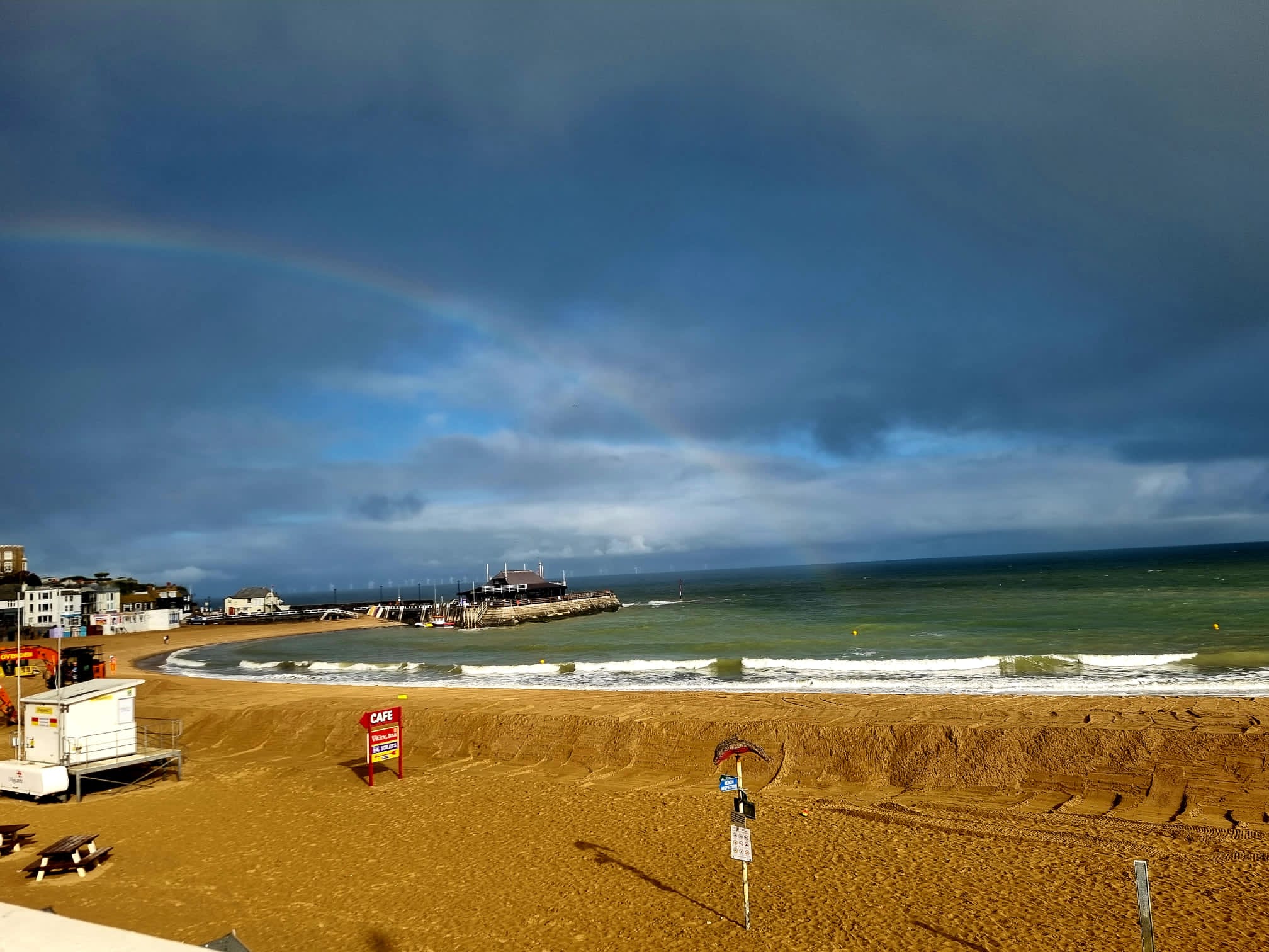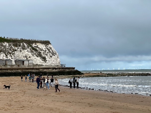 Nach einer erholsamen Nacht begann der zweite ganze Tag, den wir in England verbrachten. In der Schule unterrichtete Man uns darüber, dass wir bei Fragen auf Englisch den Satz mit einem hohen Ton beginnen und einem niedrigen beenden müssten. Um 12:30 Uhr hatten wir wieder Pause. Dann um 14 Uhr englischer Zeit trafen wir uns am Bandstand. Dort erklärte uns Adam, einer der BEC-Angestellten, dass wir nun einen Strandspaziergang machen würden. Am Strand erklärte Adam uns, dass hier am Strand ganz viele Feuerstein (Flintstone) und Kreidefelsstücke zu finden sind. Kreidefels ist der Stein, aus dem die Klippen sind. Während dem Spaziergang machten wir einen kurzen Stopp an einer Art Steinbecken, in dem sich etwas Wasser angesammelt hatte. Früher glaubte man, dass wenn man sich dieses Wasser unter die Augen streicht, es Glück bringen würde. Dort drehten wir um und trafen uns wieder am Bandstand, wo uns gesagt wurde, dass wir eine Dreiviertelstunde Pause hätten, bevor wir zurückmüssten. Eine kleine Gruppe von uns ging im Meer baden. Das Wasser war kalt und es waren hohe Wellen, aber es machte Spaß. Dann ging es zur Schule zurück und von da aus nach Hause. Um 19:45 Uhr sollten wir an der Upton Junior School antreten für einen Martial Arts-Selbstverteidigungskurs. In dem Martial-Arts-Kurs lernten wir Techniken, die uns unbesiegbar machen. Also nicht ganz… Es waren ein paar Techniken, die wir anwenden können, wenn wir angegriffen werden, aber auch, wie man reagiert, wenn dir jemand eine Pistole vors Gesicht hält.