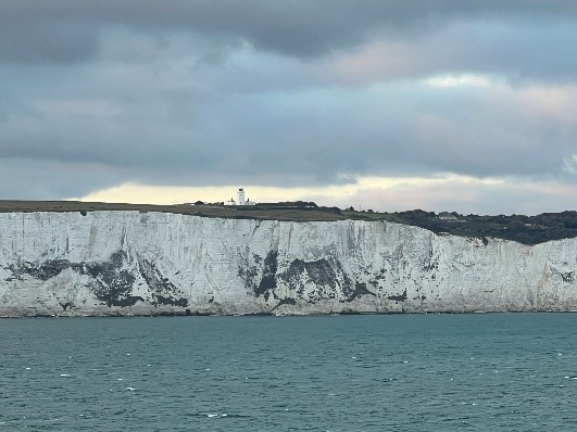 Um 5 Uhr morgens fuhren wir an der Montessori Schule Dinkelscherben nach Broadstairs in England los. Geplant waren 16 Stunden Fahrt, wir hatten allerdings das Glück, eine frühere Fähre zu erwischen und somit brauchten wir nur 14 Stunden. Als wir am Bahnhofsparkplatz ankamen, wurden wir nach und nach zu unseren Gastfamilien aus dem Bus geschickt. Die Gastfamilien fuhren uns zu unserem vorübergehenden Zuhause. Dort bekamen wir unser Abendessen serviert. Und dort konnten wir endlich in Betten schlafen.